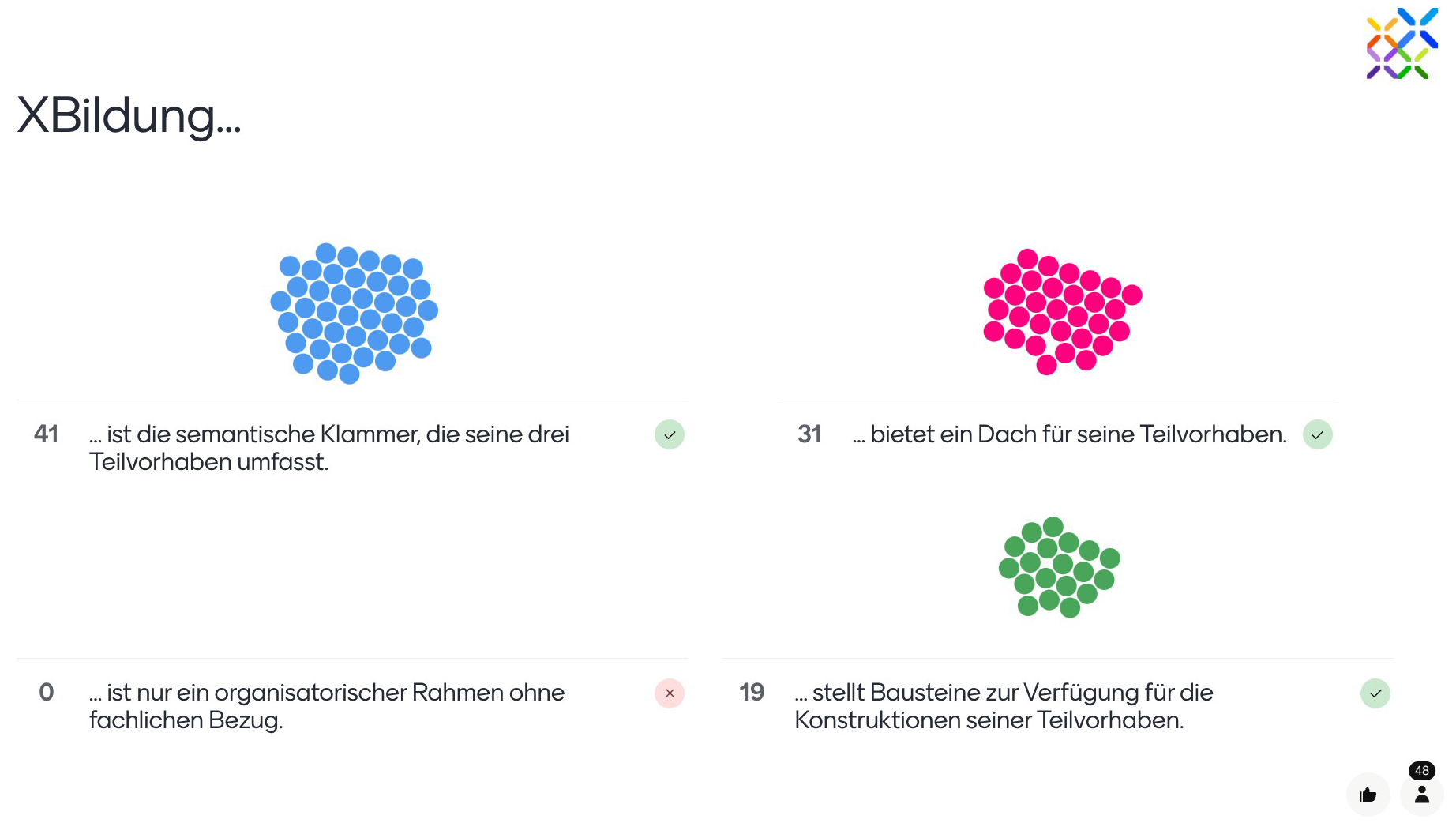 Am 3. Dezember 2025 hat XBildung zur Jahresabschlussveranstaltung mit XSchule, XHochschule und XBerufsbildung eingeladen. In diesem Rahmen wurden den Teilnehmenden ein Rückblick auf das Jahr 2025 sowie ein Ausblick auf das Jahr 2026 in den einzelnen Vorhaben präsentiert. Darüber hinaus wurde XBildung-übergreifend auf das Thema Verbindlichkeit eingegangen. Das XBildungsteam dankt für den intensiven Austausch im Rahmen der Veranstaltung und vermerkt mit Freude die zeitweise Teilnahme von über 95 Personen.
